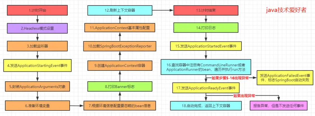Spring Boot 应用的启动流程都封装在 SpringApplication.run 方法中,它的大部分逻辑都是复用 Spring 启动的流程,只不过在它的基础上做了大量的扩展。
